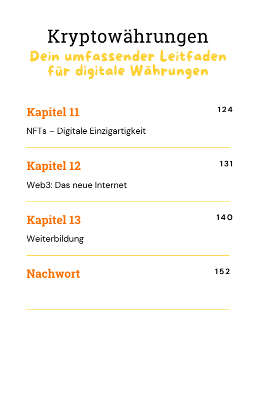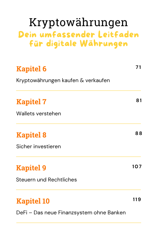 Egal ob du kompletter Anfänger oder bereits mit Krypto vertraut bist – dieses Buch führt dich Schritt für Schritt durch alle wichtigen Themen: